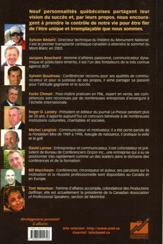 Nul n'est tenu de se laisser ballotter par les grands vents de l'existence et nul n'est tenu de demeurer un pion sur l'échiquier de la vie. Nous possédons tous la volonté de grandir et d'atteindre nos buts. Il faut seulement une pensée positive et vous avez le droit de choisir vos pensées, alors pensez positivement, prenez le contrôle de votre vie et soyez fier de l'être unique et irremplaçable que vousêtes.