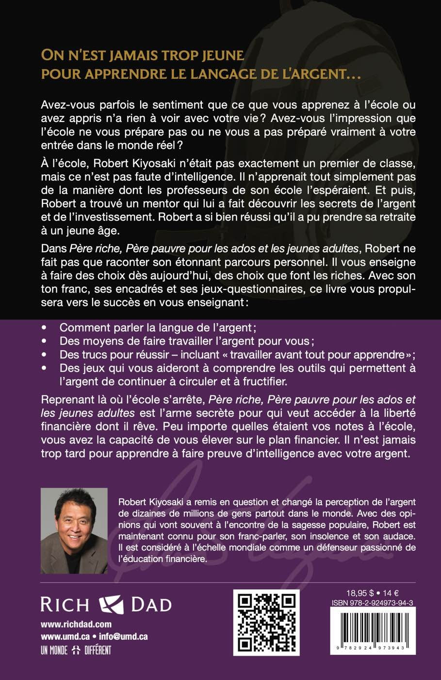 Dans Père riche, Père pauvre pour les ados et les jeunes adultes, Robert ne fait pas que raconter son étonnant parcours personnel. Il vous enseigne à faire des choix dès aujourd'hui, des choix que font les riches. Avec son ton franc, ses encadrés et ses jeux-questionnaires, ce livre vous propulsera vers le succès en vous enseignant :